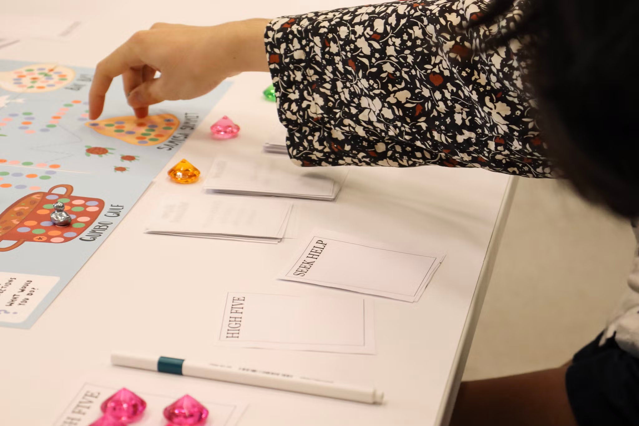 In Sea My Culture, players progress through the game by answering questions on a given card. For example, one card might ask students to share their favorite food from a certain region, while another might ask players to suggest how to assist a fellow student who is being bullied. The game begins with players starting at one of five cuisine-themed islands: Taco Terrain, Roasted Salmon River, Bao Bay, Samosa Summit, and Gumbo Gulf. As players move around the board, they explore different cultural questions and collect gems for a chance to defeat a sea monster. On this quest, players simultaneously participate in enriching conversations about identity, culture and different types of “isms,” such as racism, sexism, sizeism and ableism.