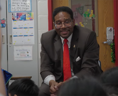 At an elementary school in Adelphi, Md., Pines observed work by researchers with the Maryland Initiative for Literacy and Equity (MILE) aimed at improving teaching methods for dual-language students. His journey also took him to an urban farm in Baltimore, where researchers with the Global FEWture Alliance are working with residents to harvest rainwater to grow crops. A visit to UMD’s own golf course showed scientists affiliated with the Climate Resilience Network studying how to keep greenhouse gases locked in wetlands rather than warming the atmosphere.
