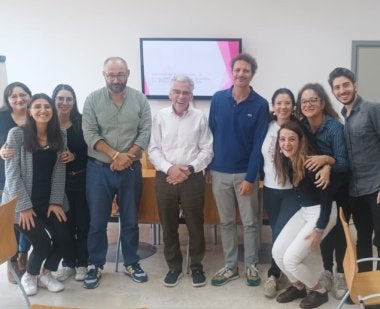 Photo: A research team studying group counseling in Palermo, Italy, with UMD Professor Dennis Kivlighan (center, in white).