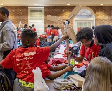 Maryland KidWind has two main components: ongoing teacher trainings and the annual Maryland Regional KidWind Challenge competition. The teacher trainings bring STEM teachers to UMD’s campus, where they learn strategies and lessons to help students explore renewable energy science and technology. At the regional competition at UMD, students present their wind turbine and solar house designs to judges, explore clean energy initiatives and participate in hands-on challenges. The third annual Maryland Regional KidWind Challenge will be held on Feb. 15, 2025. Educators may register their student teams here.